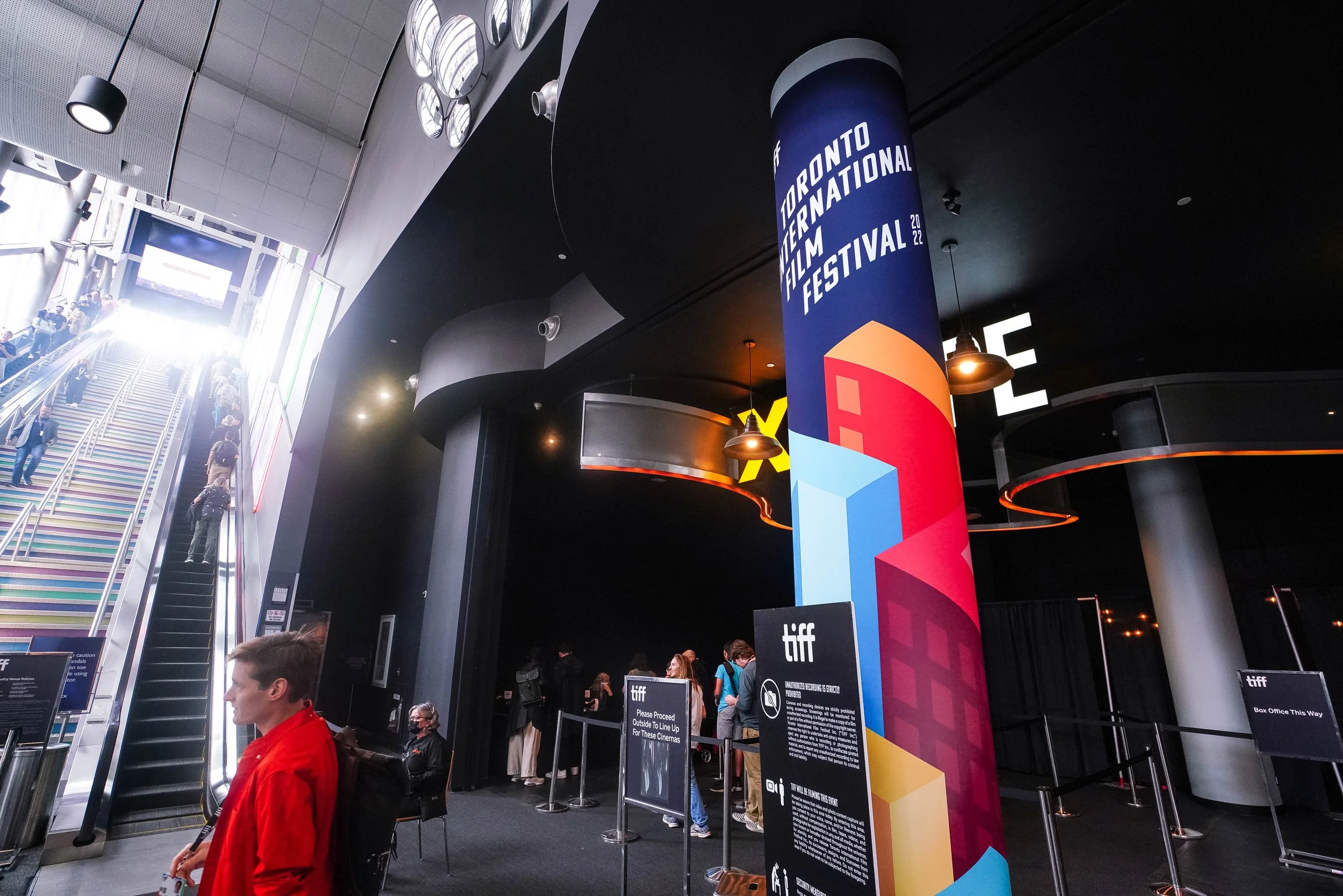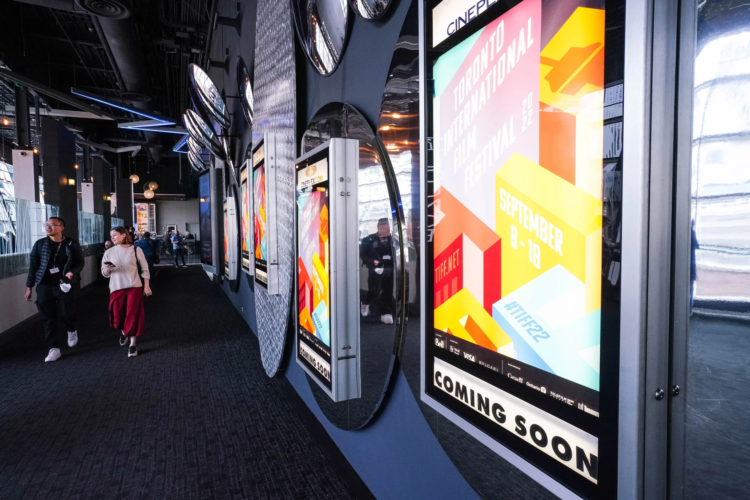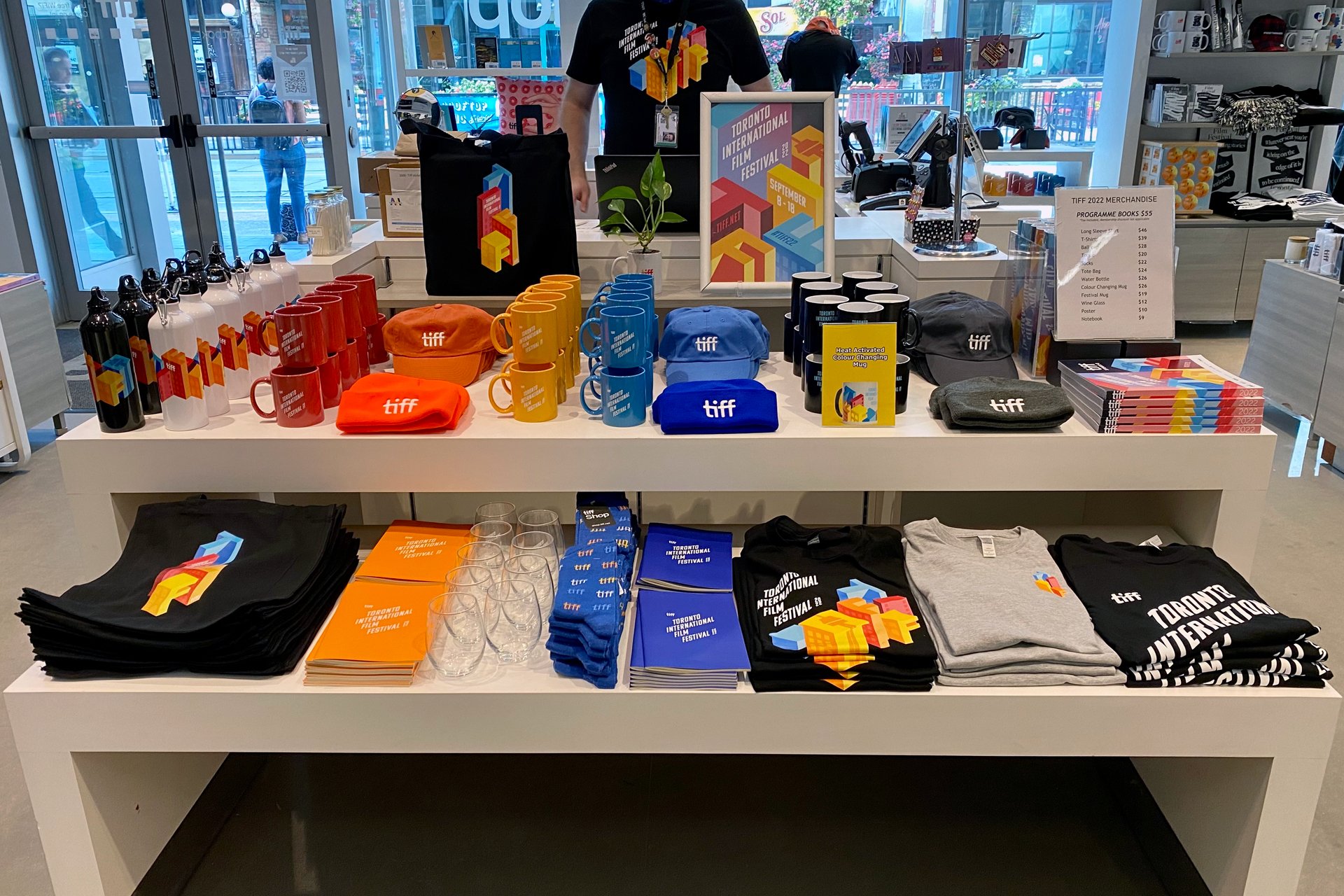 After two years of virtual and socially distanced events, TIFF's 2022 return to the streets of Toronto was met with excitement and anticipation. Celebrities, filmmakers, and audiences from around the world gathered on King Street for 11 days of screenings, concerts, and special events. This vibrant return to the city was reflected in the festival's visual identity, which featured a bold and colorful isometric cityscape made of buildings that spelled out words like 'TIFF' and 'FILM.' The branding extended across hundreds of deliverables, including digital campaign assets, in-theatre pre-show slideshows, large-scale billboards and transit wraps, photo ops, and a full range of merchandise sold at the TIFF Shop.
